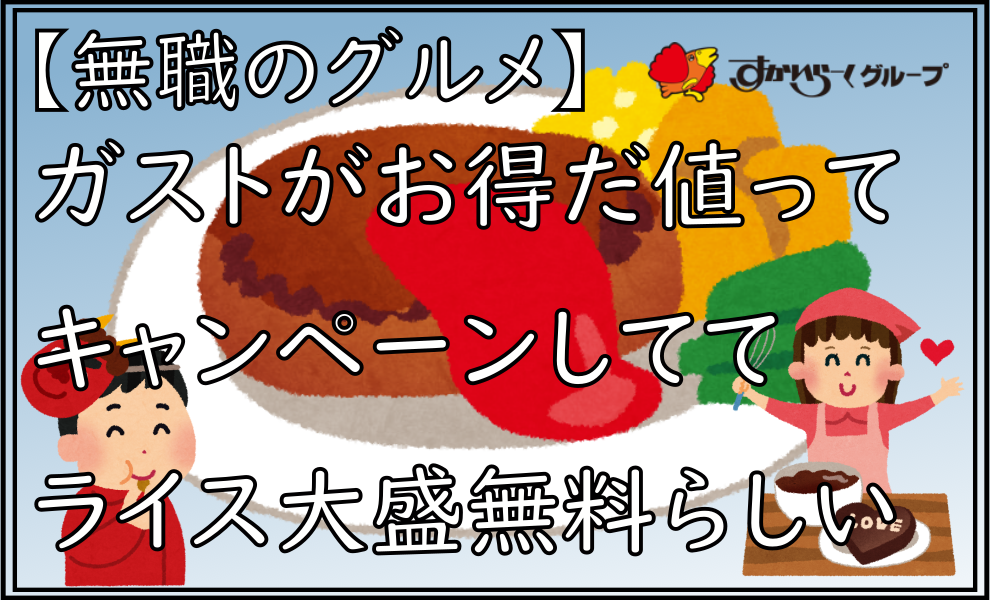 【無職のグルメ】ガストがお得だ値ってキャンペーンしててライス大盛無料らしい