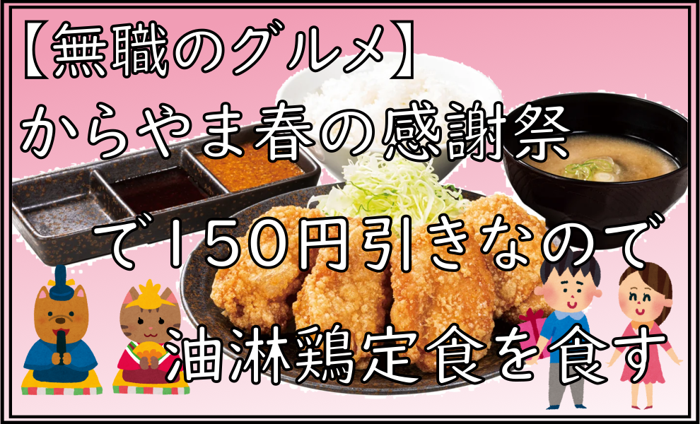 【無職のグルメ】からやま春の感謝祭で150円引きなので油淋鶏定食を食す