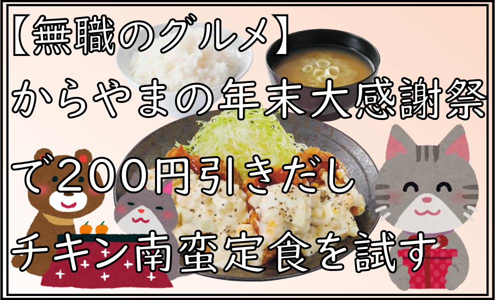 【無職のグルメ】からやまの年末大感謝祭で200円引きだしチキン南蛮定食を試す