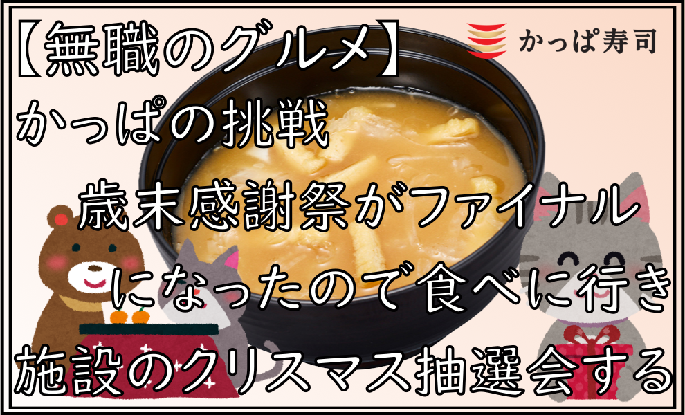 【無職のグルメ】かっぱの挑戦歳末感謝祭がファイナルになったので食べに行き施設のクリスマス抽選会する