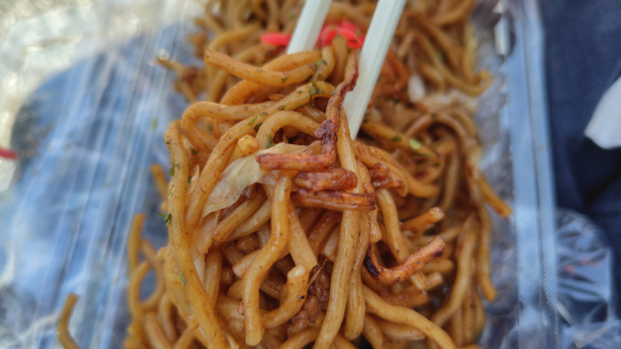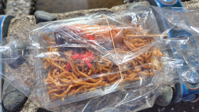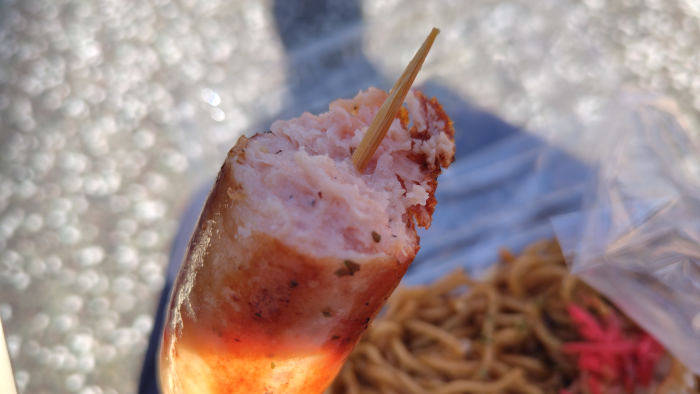 焼きそばはちょっとパサついてたけどフランクフルトの脂でギトギトだったので、麺が脂を吸ってすっきりとして食べる事ができました。まぁまぁ美味しかったですね。