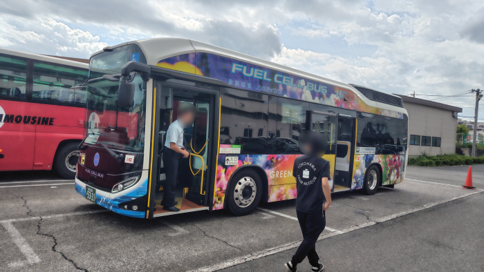 今回乗ったのは電気バスみたいですね。電気バスなのかな?