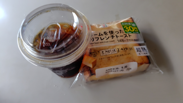 という事で早速アイスコーヒーと30円引きになってるフレンチトーストをクイックペイで買ってきました。ローソンでもよくフレンチトーストを買ってたけど、味はどう違うのかな?コーヒーはノーマルの濃さで淹れてみたけど苦みとコクは良い感じですね。