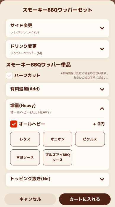 やはりバーガーキングといえばALLHEAVYだよねって事でオールベビーにチェックを入れて注文ですね。