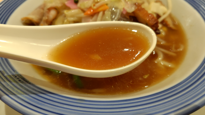 スープを飲んでみたけど味は名前通り醤油味で鰹節みたいな感じで、バーミヤンのラーメンスープに似た感じのお味でちょっとパンチがノーマル味より足りないですね。後は麺とか具材も普通なので通常ちゃんぽんよりちょっと高いから売れないのでセールしてるのかな?