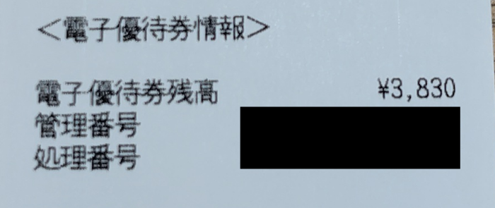 紙のレシートには残高が印字されるけど、電子優待に残高見えてるからレシートなくしても問題無いですね。