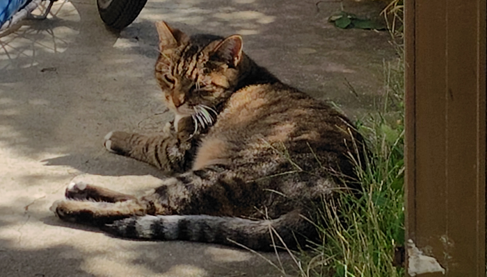 この猫ちゃんを見つけた時は暑かったのでお庭の日陰でまったりとしていました。すげー睨んできて邪魔するなって感じですね。写真撮るだけ撮って撤収したから許してね。こいつはいつか撫でさせてくれるようになるのかな?