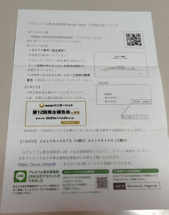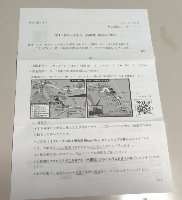 リンガーハットの株主総会でお土産貰えるか確認していく!