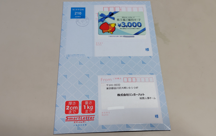 リンガーハットからレターパック届いたと思ったけど、よく見るとスマートレターって名前の物なのね。何が届いたんだろう?もしや株主総会当たった?