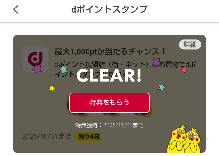 おまけの10月のdポイントクラブお買い物スタンプラリーくじの結果