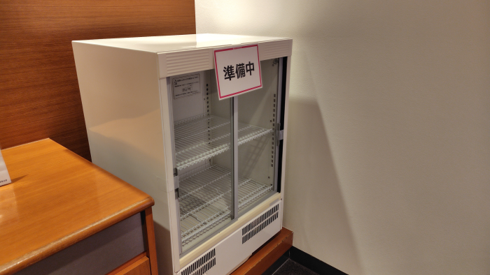 これが飲みたいやつを取り出す冷蔵庫かな?けど準備中で中身が空っぽですね。嫌な予感を抱えつつコーヒーマシーンでアイスコーヒーを作ろうとしたら・・・