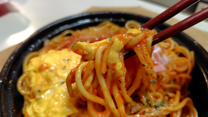 次は盛りすぎナポリタンを食べていこうかと思います。これは見た感じ前回より玉子ソースが多い?前回の個体がハズレなのか今回の個体が当たりなのか?