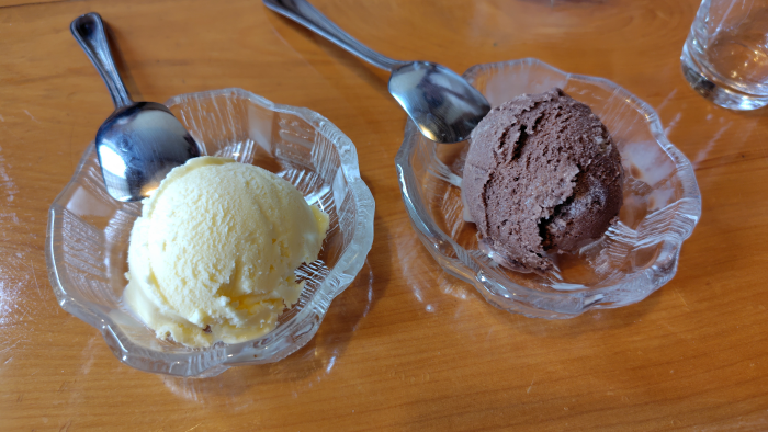 お食事後は+250円のアイスを堪能です。バニラとチョコですが普通のアイスクリームでしたがまったりと堪能できました。