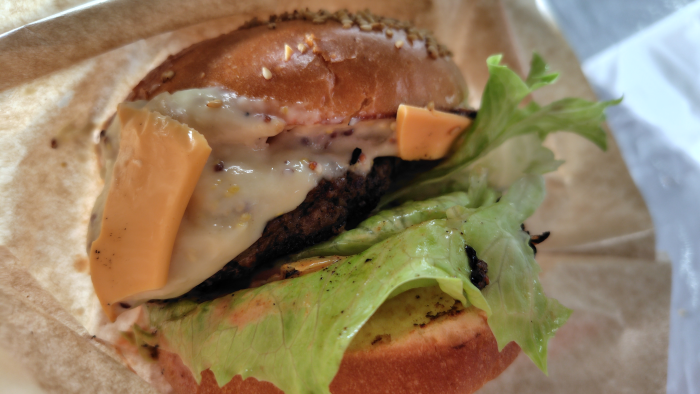 次はハンバーガー屋さんでちょっと豪華な900円のクリームチーズ和牛バーガーを頼んだけど、写真だと溢れ出るチーズだけど、実物はそれほど溢れ出てませんね。パンズもパティもいいものだとわかるけど、ちょっと好みに合わないかな?これならフィッシュバーガー頼んで近くの焼きそば頼んだ方が良かったかも?