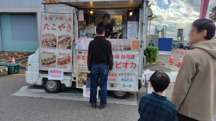 今回のメインコンテンツであるキッチンカーゾーンです。昔来た時は会社の出し物的な感じだった気がするけど、今回はちゃんとしたお店が出てるみたいですね。
