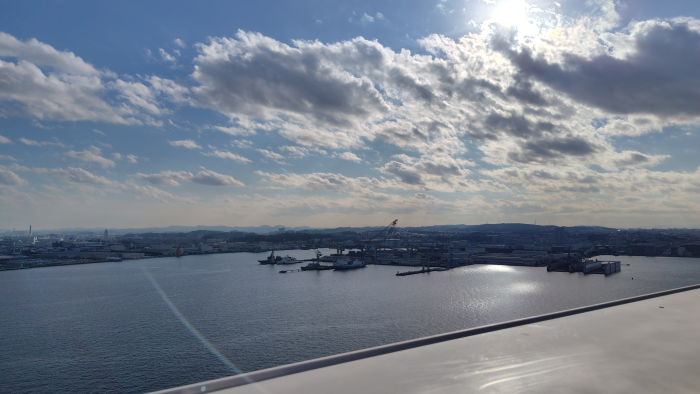 天気もいいので遠くの海の上にちょっとだけ橋が見えますね。案内してくれるスタッフさんに確認すると東京湾アクアラインとの事でした。何か海から突然橋が出てるのでもしかしたらと思ったら当たってたみたいですね。磯子区から見えるものなんですね。