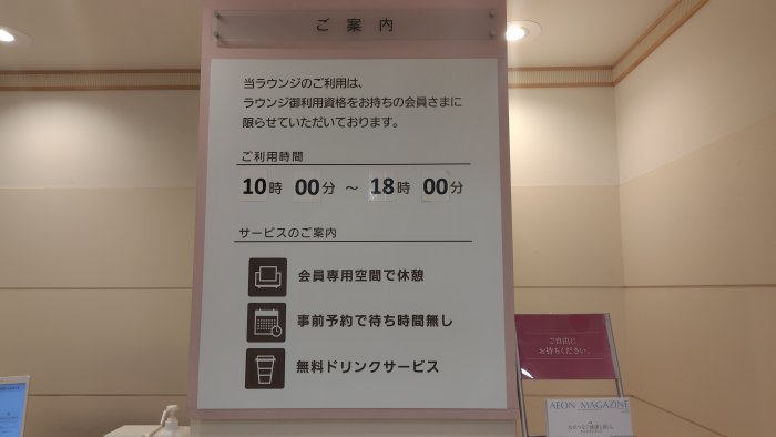 入ったすぐのエレベーターに乗ったらイオンラウンジ2階は止まらないエレベーターで、3階で降りてエスカレーターで降りて2階のイオンラウンジへ向かいました。
