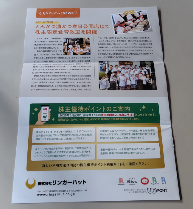 リンガーハットから株主優待が届いたので開封して確認していく猫山猫雄ですにゃ