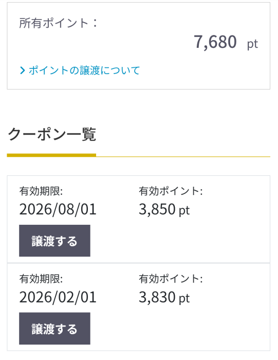 上記の受け取りをする前からリンガーハットの株主専用通販でポイントが表示されてたけど、これを譲渡してから受け取り操作するとどうなるんだろう?次回の優待の時も同じなら譲渡してから受け取り操作してみようかな?