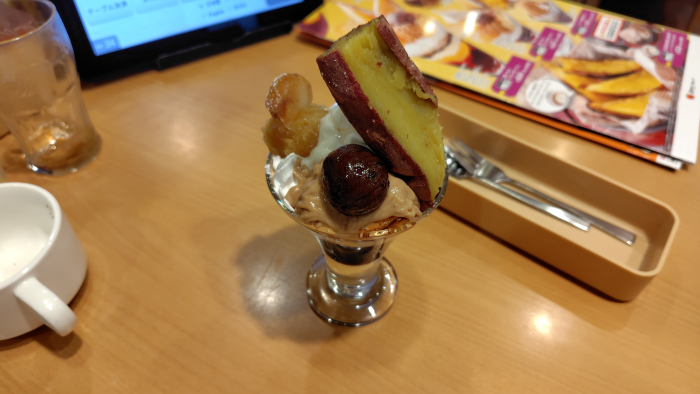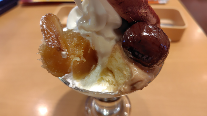 蜜いもとマロンのサンデーも33%引きクーポン対象だったので頼んでみました。芋と栗がたんまりありますね。それと焼き芋の主張が凄いですね。