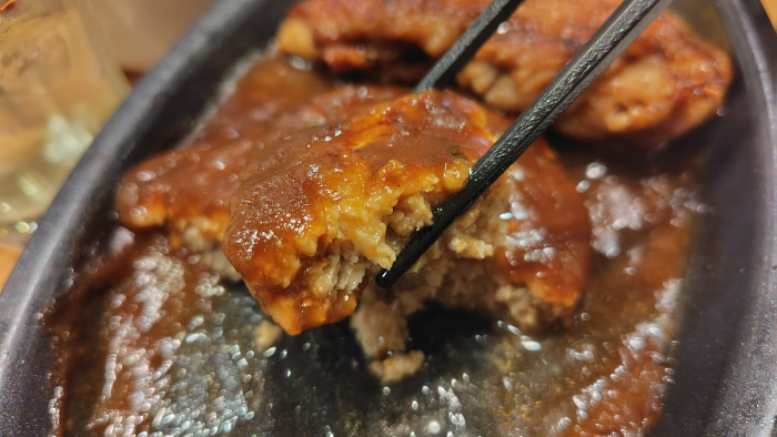 ハンバーグを食べてみたけど濃厚なデミグラスソースに程よいみっしりとした肉質が丁度良くて、こちらもこちらでビールとかに合いそうでご飯もしっかり進みますね。