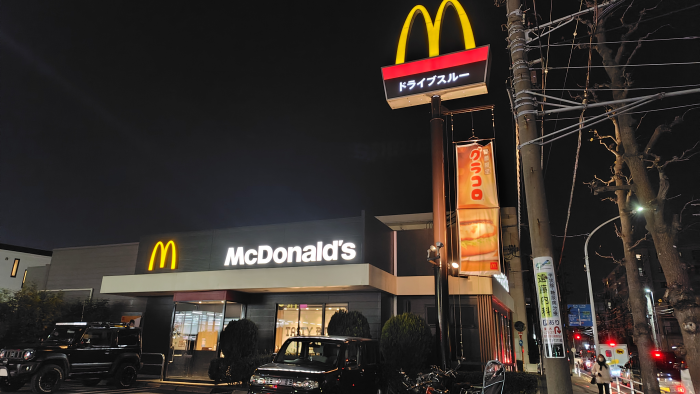 マクドナルドのグラコロバーガーが第二弾になったと聞いて山超えて、ドライブスルーのあるマクドナルドに来てみました。グラコロの幟があってアピールしてますね。