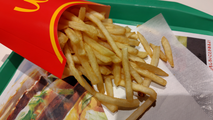 サイドメニューはいつものポテトを頼んでみました。細くて量が多くてたまに食べるにはいいですね。今度は健康の為にサラダにしようかな?