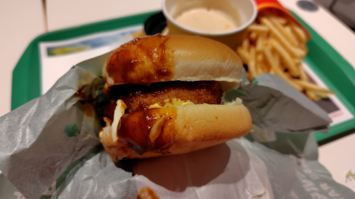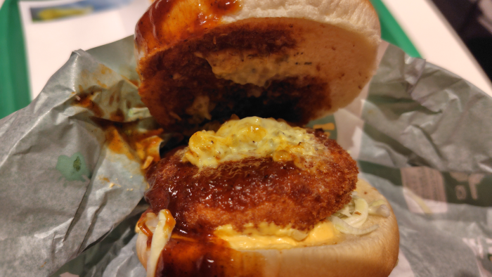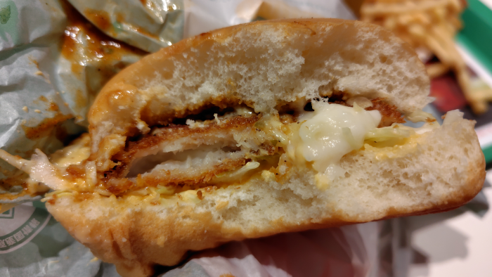 パンズを開いてみるとトロ旨タルタルが見えますがちょっと量少ないかな?食べてみるとデミグラスソースの味わいとクリーミーなカツの中身が味わえましたが、タルタルの味わいは感じられませんでしたね。デミグラスソースの味が強すぎたのかな?