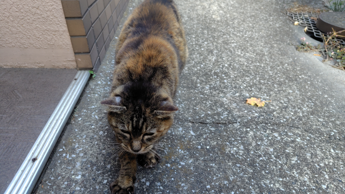 いつも近づくとフシャーと怒るフシャー猫ちゃんに久しぶりに会いに行ったら、やっぱりフシャーと威嚇されました。ちょっと待ってたら思い出したのかにゃーんと近づいてきました。その後はワシャワシャと触らせてくれたので大満足ですね。それと耳の裏がちょっとはげてますが皮膚病かな?