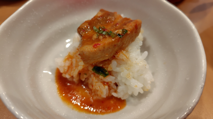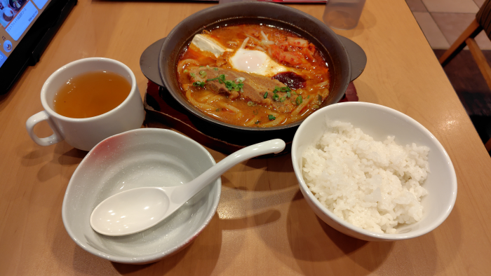 マヌルネコチャレンジの帰りにお腹が減ったので寄ってみたが、何を食べようかメニュー見てたら旨っとろ!豚バラチゲごはん付きってちょうど良さそうなのがあったので頼んでみました。