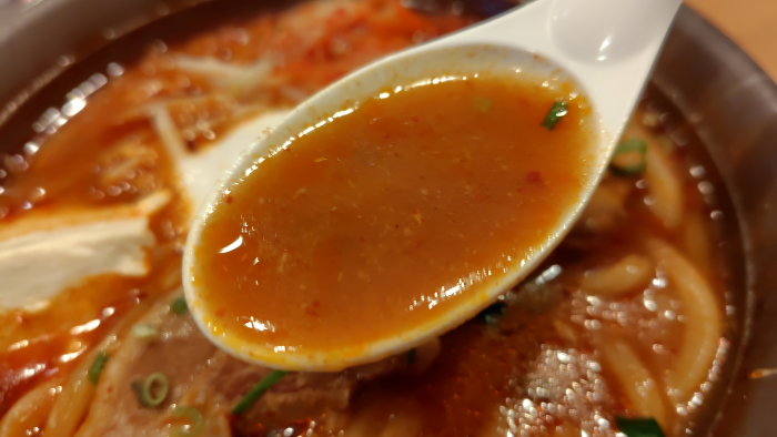 スープを飲んでみたけど辛いだけでなく美味さのコクもあって寒かったので暖かいしゴクゴク飲めそうですね。