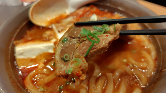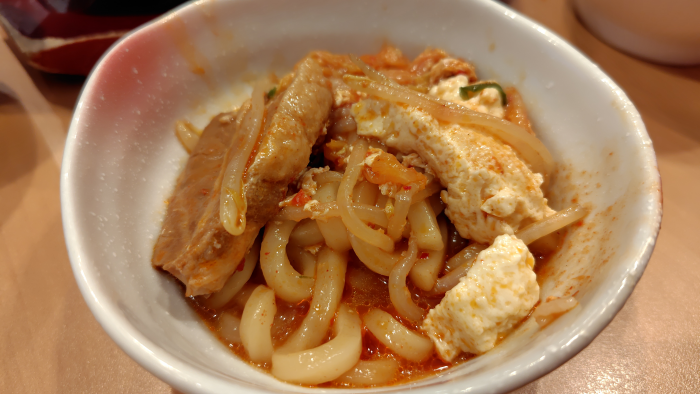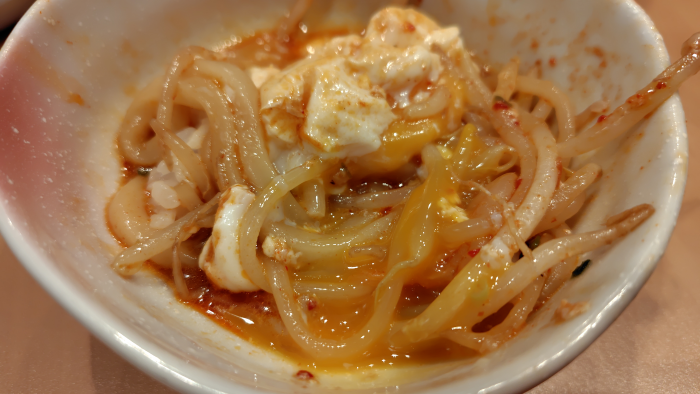 次はうどんにお肉もよそって食べてみたけど味が濃厚で脳がバグりそうですね。これはご飯を大盛りで頼んでおいた方が良かったですね。