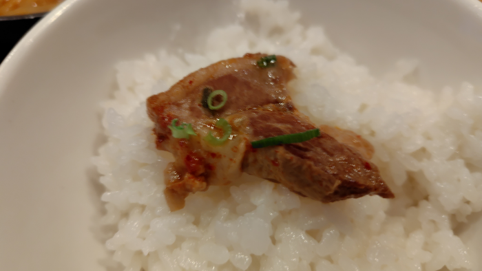 ごはんをよそって肉を乗せてスープをかけて食べてみたら美味しい×美味しいで優勝ですね。ビールとかお酒に合いそうな味わいだけど自転車で来たので飲めないのが残念ですね。