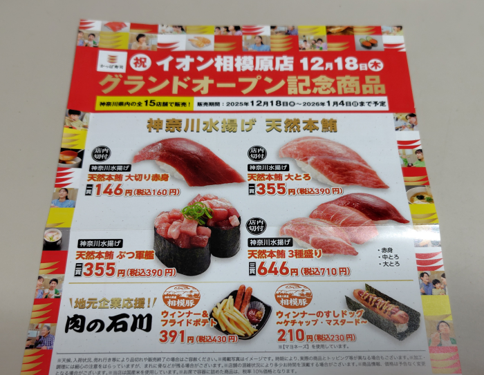 来週は神奈川県店舗限定の記念商品が販売開始するみたいで、ウィンナーのすしドッグってのが気になるので食べに行かないとね。そろそろ株主優待ポイントが付与されるから天然本鮪3種盛りもいっちゃう?