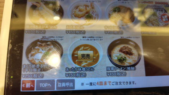 それとメニューを確認してたらあったか味噌うどんなんてのがあったけど前からあったっけ?150円でお得そうだけど写真見る感じ具材ない?