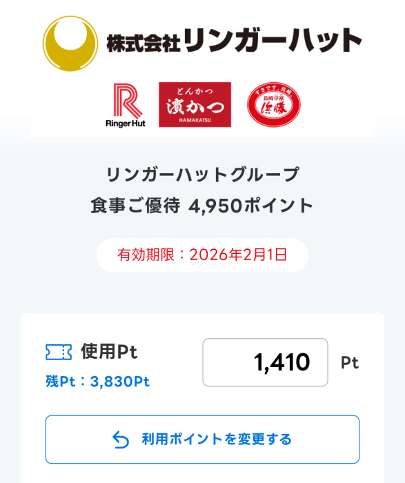 早速優待券で注文してみました。ポイント全然使ってないなと上の4,950ポイントをみてたけど、残りポイントは下の青い文字なんですね。