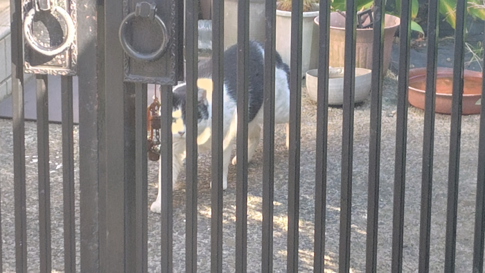 隣町へお散歩中に民家敷地内をのそのそ歩く猫ちゃんを見つけました。凄い困り顔でこちらを見つめてきて可愛いですね。そのまま警戒しつつ敷地内だからか変わらぬ速度でのしのしと歩き去っていきました。