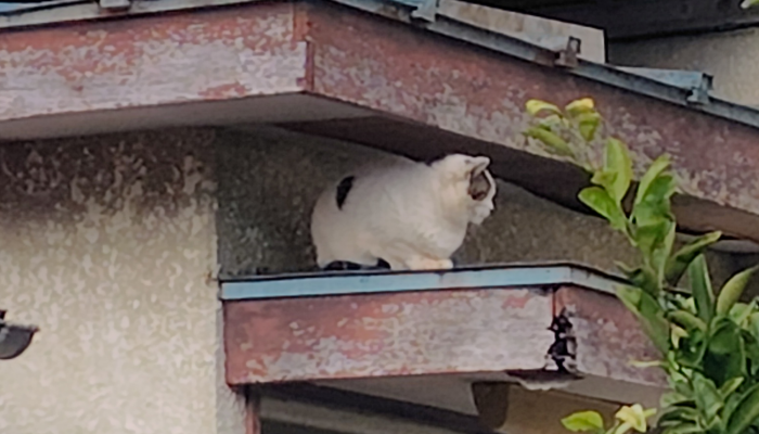 民家の軒の上にちょこんと座ってる猫ちゃんを見つけたのでパシャリと撮ってみました。猫ちゃんは何でそんな所にいるのかな?より日光に近い場所で温かくなりたいのかな?とりあえずちょこんと座ってる姿はかわいいですね。