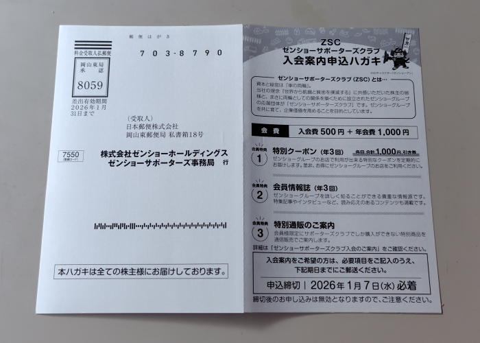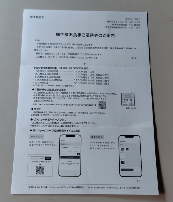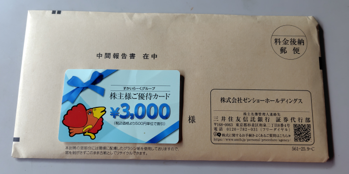 株式会社ゼンショーホールディングスから封書が届いたので開封して確認していきます。