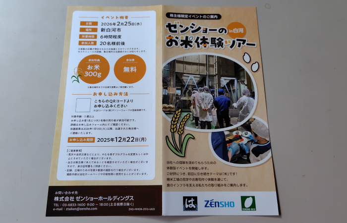 他にはゼンショーのお米体験ツアーの申込み案内がありますね。時間をかければ往復8千円かかるか、とりあえず申し込んでみるかな?