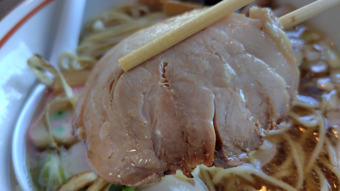 チャーシューは分厚くてすごく柔らかくて味もしみ込んでてて、これ単品で頼んでお酒のおつまみかチャーシュー丼で食べたいくらいですね。特入りにしたので増量してるから特入りにして正解でした。