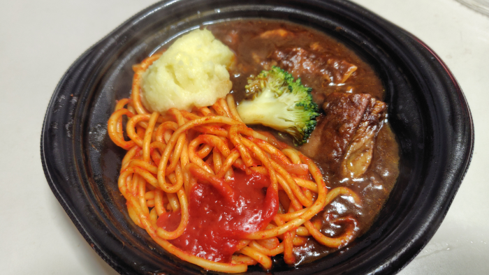 問題としてはナポリタン必要か?ナポリタンを外して容器小さくて安くするか、ナポリタンをなくしてビーフシチュー増やせなかったのかね?
