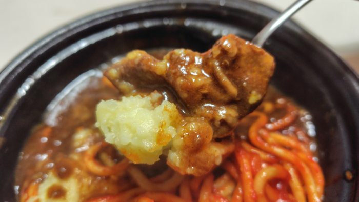 ジャガイモと一緒にビーフシチューを食べてみたけど美味しかったですね。パンやご飯が欲しいですね。