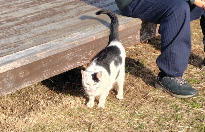 鴨川で見かけたカツラ被りキャットちゃん。先日の港付近にいたけどこの日は商業施設にいました。正月休みだから人が少ないので、ここまで来たのかキジトラたちに追い出されたのか足が映ってるおじいさんに甘えてました。これだけ甘えてるなら近づける?と思って近寄ったらぴゃっと逃げる姿勢を見せたので撤収しました。