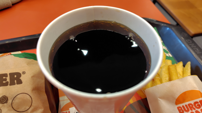 コカ・コーラを確認してみましたが、氷抜きで頼んでみたけど氷が抜いた分なみなみと入っていていいですね。冬だしキンキンに冷えてて欲しいわけじゃないし飲み終えるまでは冷えてるだろうから、冬で店内飲食の時は氷抜きでいいかもしれませんね。