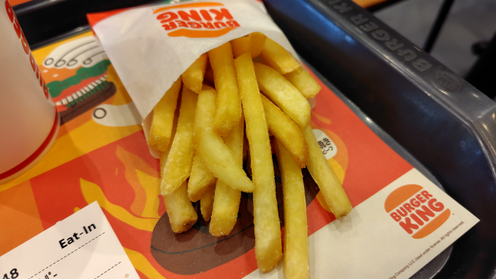 フレンチフライはマクドナルドのポテトより太目で芋の味がしっかりと味わえて良いですね。コカ・コーラにもよく合っておりGoodですね。