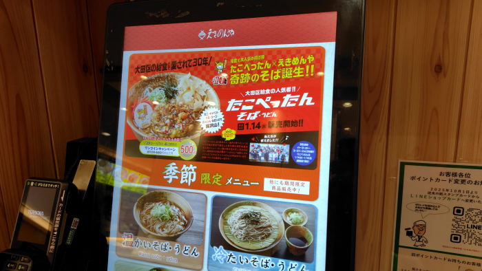 期間限定だけどワンコインでたこぺったんなるものと蕎麦を食べらるのでお得ですね。