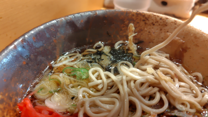 麺は昔の駅そばみたくぱっさぱさでなく、ツルツルでコシもあり美味しいですね。ソースとか溶け込んでも汁は変わらず美味しいですね。