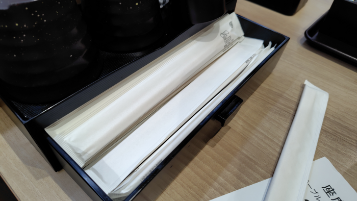 食べる準備として箸を出そうと思ったら割りばしが紙袋に入ってたけど、昔からこんなんだっけ?爪楊枝入りだし前回来た時は爪楊枝無かったと思うので、今年から紙袋入りになった?衛生的になったね。