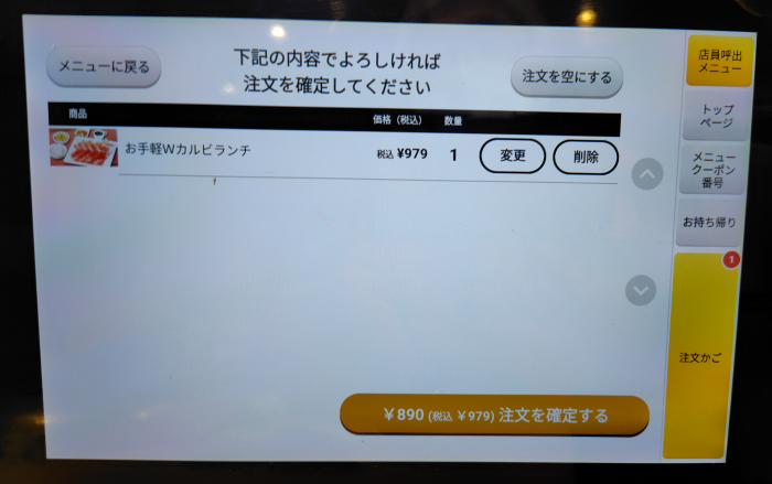 お手軽Wカルビランチで979円でしたが、8%引きアプリクーポンを使ったので901円になりました。900円になるかと思ったけど残念でした。電子優待で支払ったのでノー現金でフィニッシュする事ができました。